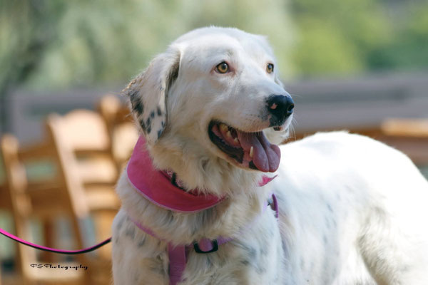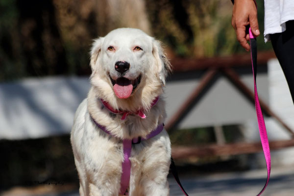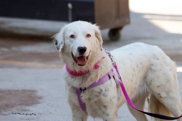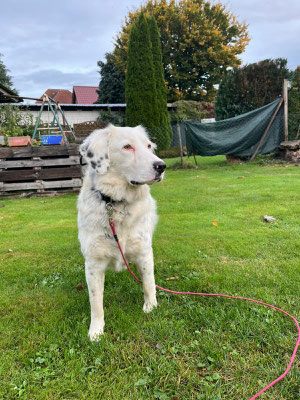 Schnelle oder laute Bewegungen erschrecken sie noch ein wenig, aber sie ist sehr lernfreudig und taut täglich mehr auf. Autofahren klappt prima, und Kinder ab etwa 8 Jahren sind für sie gut vorstellbar.