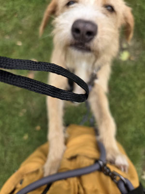 An Leine und Sicherheitsgeschirr zu laufen, Autofahren und Spaziergänge sind ihr bereits vertraut – sie meistert das schon erstaunlich gut, auch wenn sie natürlich noch etwas Routine und Übung braucht. Treppensteigen kennt sie ebenfalls, auch hier darf sie noch weiter lernen. Die Stubenreinheit wird fleißig geübt.