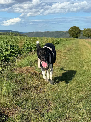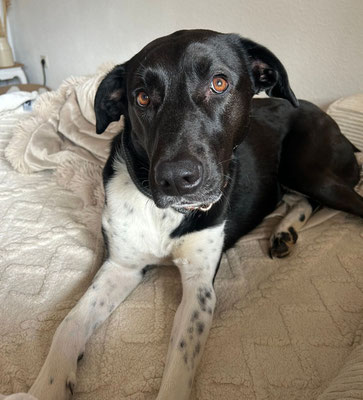 Henna ist eine vierjährige Mischlingshündin (geb. November 2021, ca. 25 kg) und kastriert. Sie liebt Bewegung und ist bei Spaziergängen, Joggingrunden oder Wanderungen voller Energie. Zuhause zeigt sie sich dagegen ausgeglichen, entspannt und kann problemlos alleine bleiben.