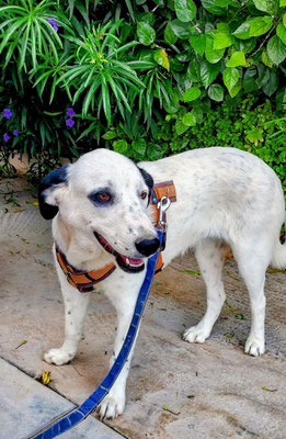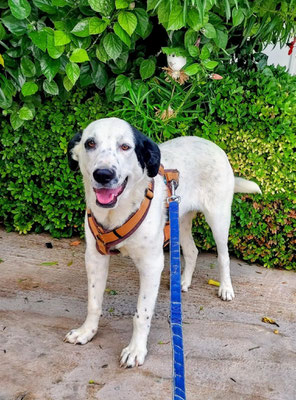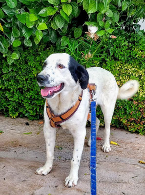 Clara ist eine sehr freundliche Hündin, die sich gut mit anderen Hunden versteht. Sie läuft brav an der Leine mit Geschirr und verhält sich im Auto ruhig.