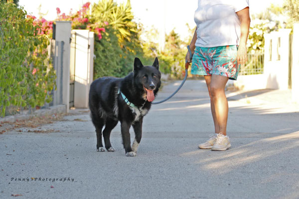 Bella wiegt etwa 30 kg, ist freundlich, menschenbezogen und gut erzogen – jedoch mit Katzen kann sie leider nichts anfangen. Sie kennt das Laufen an der Leine sowie das Autofahren.
