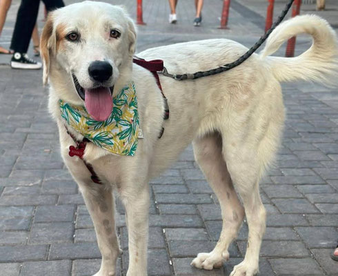 Bonnie, geboren am 02.01.2024, wurde im Sommer in Peristeri ausgesetzt und in schlimmem Zustand gefunden – dünn und vernachlässigt. Zum Glück kümmert sich nun eine liebe Frau als Pflegestelle um sie.