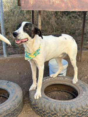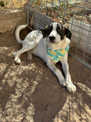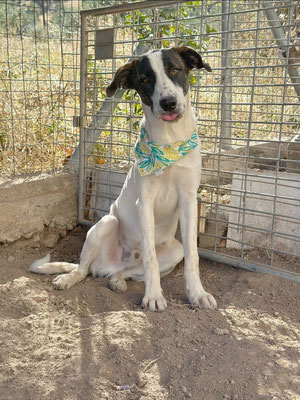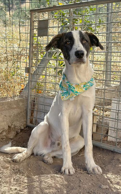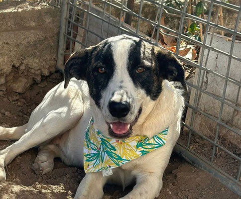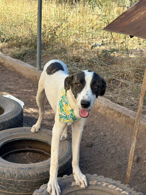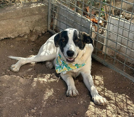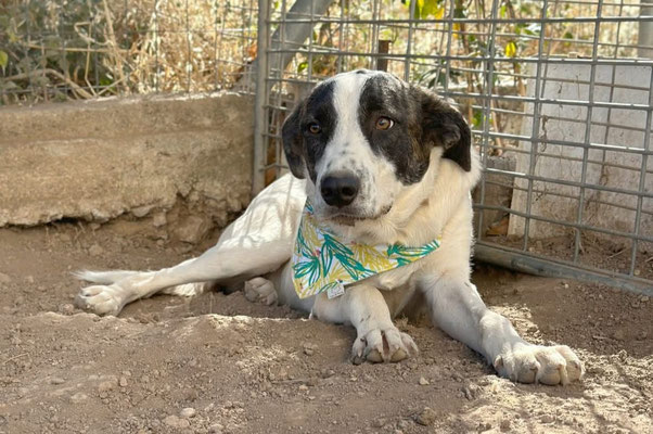 Zurzeit lebt er auf einer Pflegestelle in Aliartos. Dort ist er zwar geschützt, aber leider nur in einem eingezäunten Außenbereich untergebracht und nicht im Haus. Wir wünschen uns sehr, dass er bald eine richtige Pflegestelle oder – noch besser – ein festes Zuhause findet.